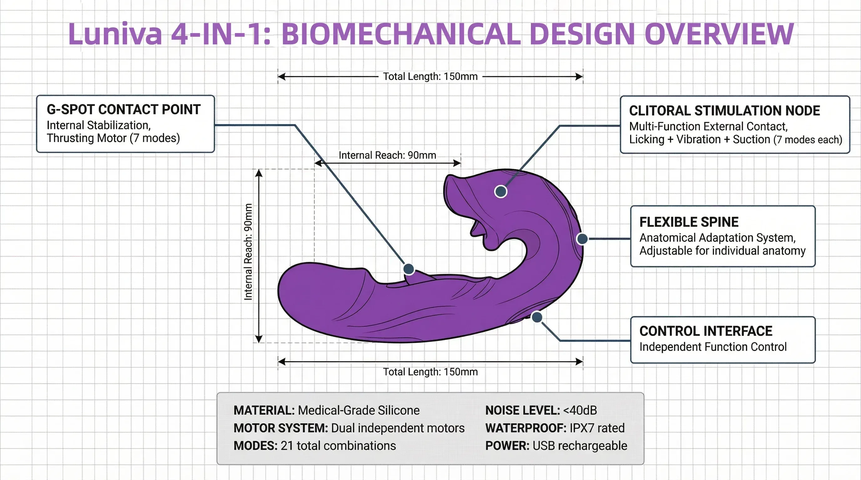 Luniva™ is a three-in-one female massager that integrates three core technologies: vibration, licking, and suction. Its innovative design can simultaneously stimulate the main sensitive areas, bringing a richer and more layered pleasure experience.